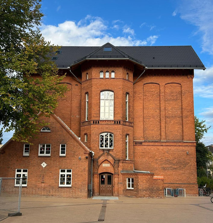 Wir sind in den Sommerferien 2025 in unser frisch saniertes Bestandsgebäude eingezogen und freuen uns sehr über diese wunderschöne Schule.